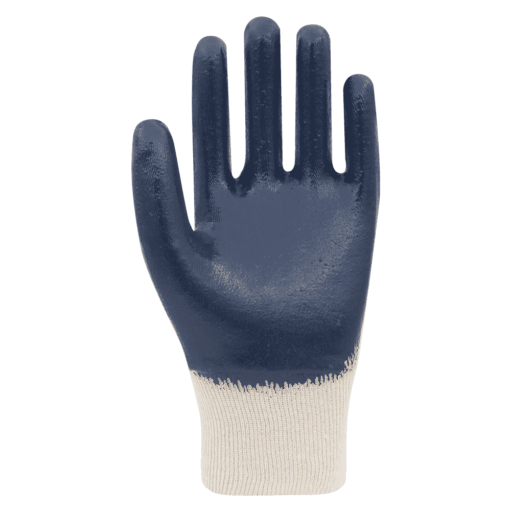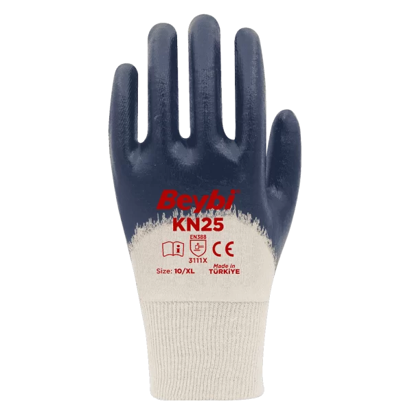 Pamuk astar üzerine siyah/lacivert nitril kaplı eldiven.