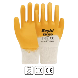 Pamuk astar üzerine nitril kaplı iş eldiveni.